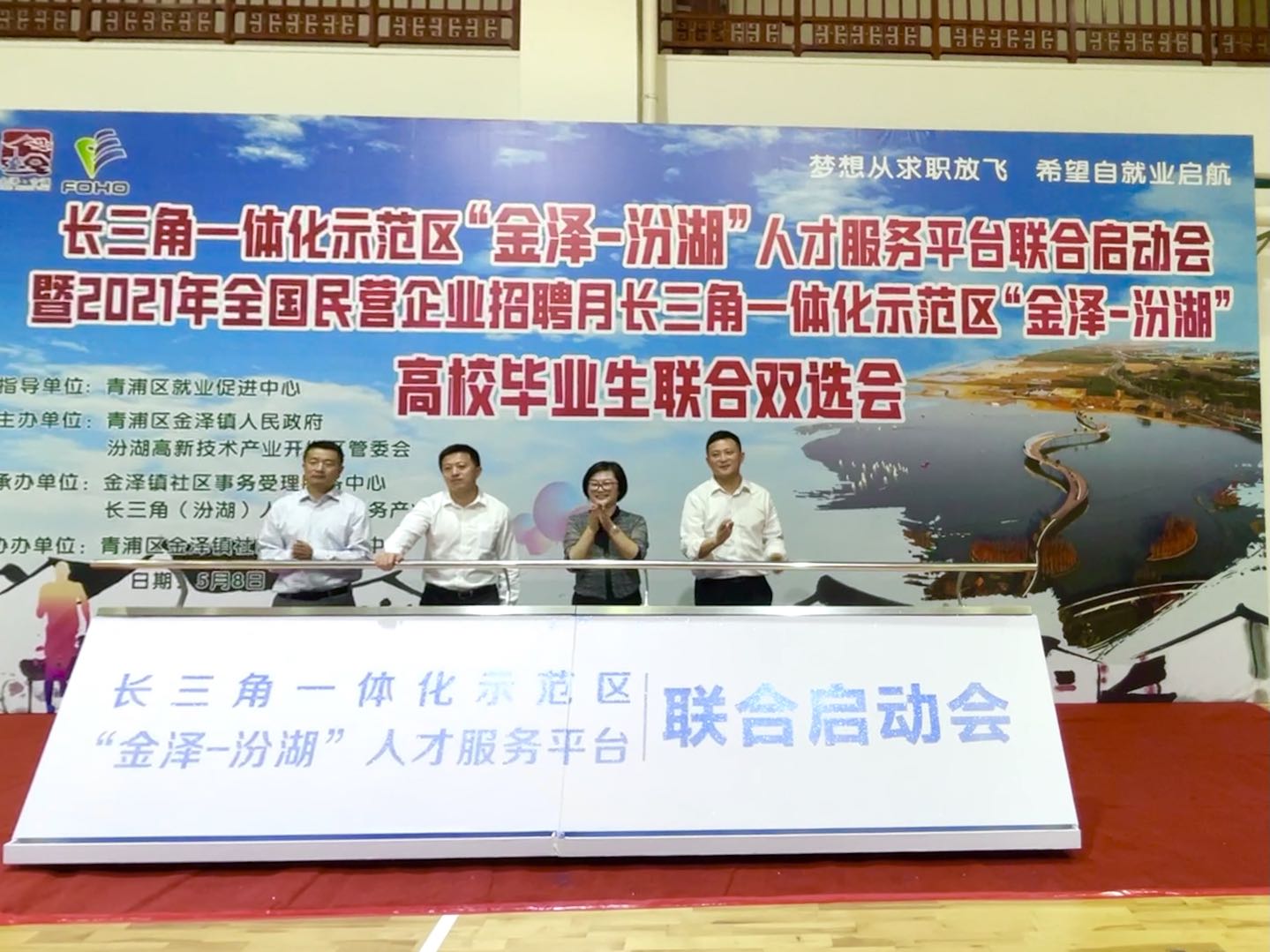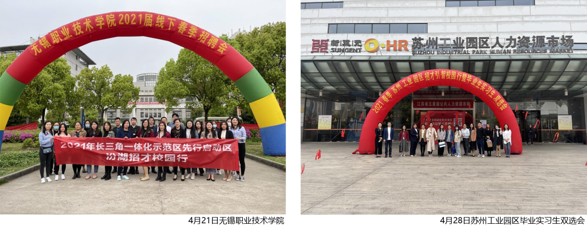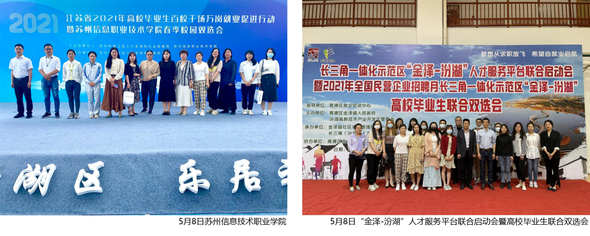 4月28日产业园与苏州园区人力资源市场合作,组织企业参加苏州工业园区毕业实习生双选会;5月8日与青浦区金泽镇人民政府合作,举办长三角一体化示范区“金泽-汾湖”人才服务平台联合启动会暨高校毕业生联合双选会,相关领导出席了活动并发表了致辞。